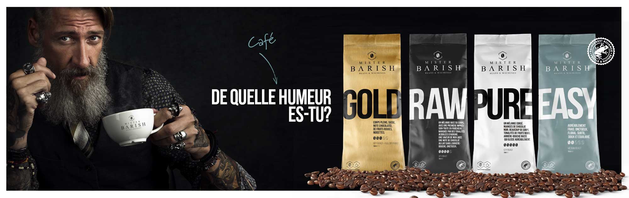 Chacun ses goûts. C’est pourquoi, chez Mister Barish, nous vous offrons la possibilité de sélectionner le mélange qui vous convient le mieux. Vous avez ainsi le choix entre des mélanges haut de gamme équilibrés, depuis un mélange 100 % arabica jusqu’à notre assemblage le plus corsé, qui associe arabica et robusta.