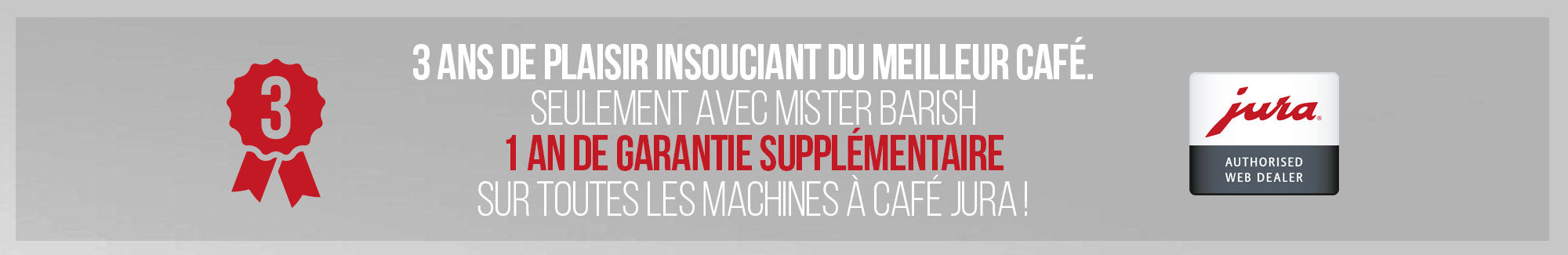 Achetez exclusivement votre machine à café JURA avec une garantie d'un an extra chez Mister Barish. Notre objectif est que vous puissiez continuer à boire le meilleur café sans vous inquiéter.